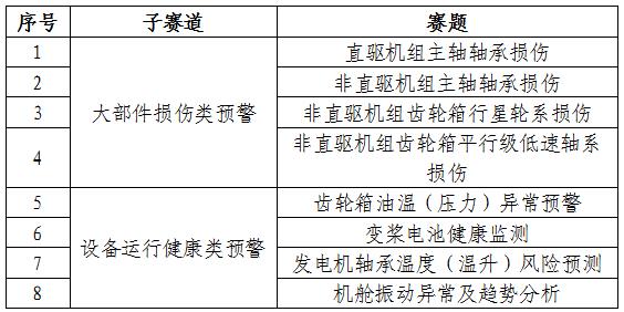 本次龙源电力第一届新能源算法竞赛,比赛总时长暂����� �������Ƴ������������ �������Ƴ������������ �������Ƴ������������ �������Ƴ�������定为6个月,三个赛道按照故����� �������Ƴ������������ �������Ƴ������������ �������Ƴ������������ �������Ƴ�������障预警、功率预测、图像识别的顺序陆续开����� �������Ƴ������������ �������Ƴ������������ �������Ƴ������������ �������Ƴ�������展,每月进行一轮比赛。每支队伍参加����� �������Ƴ������������ �������Ƴ������������ �������Ƴ������������ �������Ƴ�������赛题数量不限,每道赛题设置独立评判标准,分����� �������Ƴ������������ �������Ƴ������������ �������Ƴ������������ �������Ƴ�������别进行计分排名。根据比赛模型效果进����� �������Ƴ������������ �������Ƴ������������ �������Ƴ������������ �������Ƴ�������展,各赛道将可能提前终止比赛,参赛团队参照报����� �������Ƴ������������ �������Ƴ������������ �������Ƴ����������� �������Ƴ�������名赛道的时间计划进行相应部署准备。